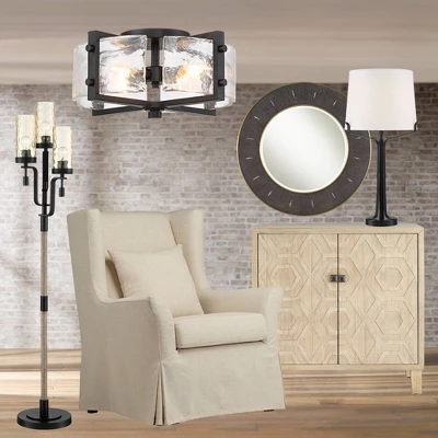 Possini Euro Design Adri Modern Ceiling Light Flush Mount Fixture Black 16 1/2″ Wide Black 4-Light Textured Glass For Bedroom Kitchen Living Room Home