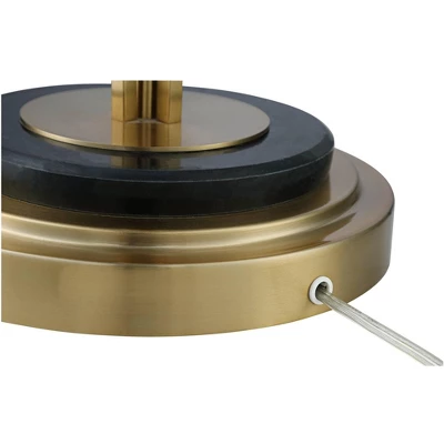 Possini Euro Design Palisade Modern Floor Lamp 64″ Tall Satin Brass Metal Trimmed Fabric Tapered Drum Shade For Living Room Bedroom Office House Home