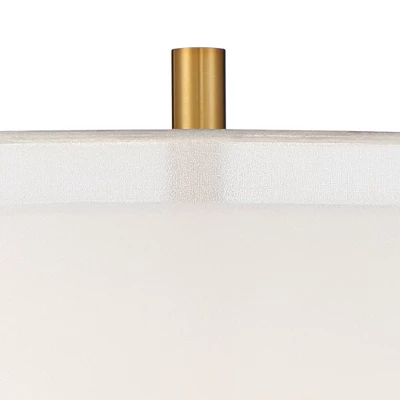 Complete any space with this simple yet stylish floor lamp from the Possini Euro Design brand of lighting. The metal base, pole and finial feature a mixed metals contrast of gold and black finishes. Topped with a designer double layer linen and sheer drum shade, twin pull chains add a convenient touch to complete the design.